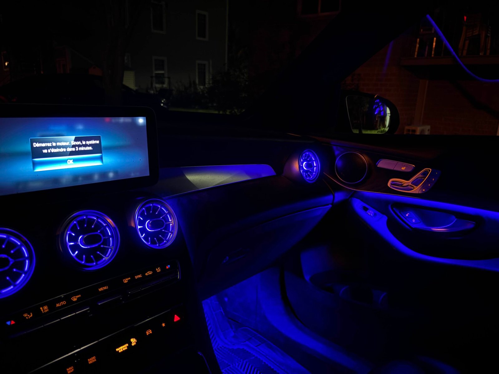 – Installation d’ambient lighting (300$) : éclairage sur les 4 portes + l’intérieur, compatible avec tous les véhicules. Cela donne un style moderne et unique à votre voiture, surtout de nuit